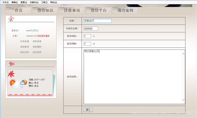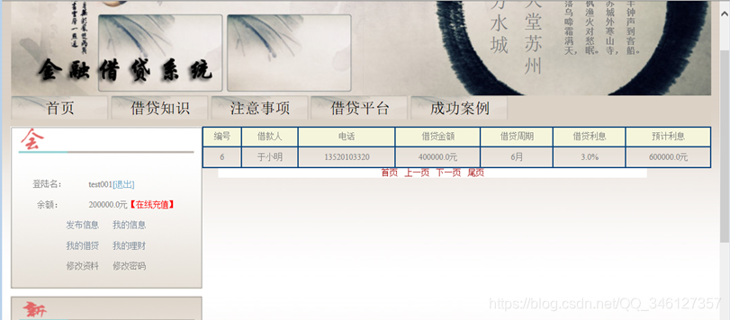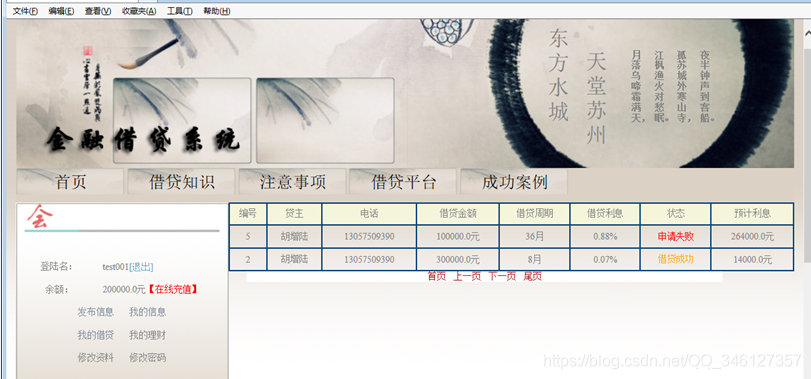 一套基于基于JavaWeb实现的金融借贷系统 或 P2P金融管理系统 或 小额贷款系统,详细介绍了金融借贷系统的实现,包括:1.项目介绍2.环境搭建3.系统功能4.技术实现5.项目运行6.功能演示以通俗易懂的方式,手把手的带你从零开始运行本套金融借贷系统,该项目附带全部源码可作为毕设使用。