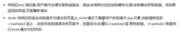 将MVC中的V变为了MVVM,实现了双向绑定。其中VM就是vue的作用,这样页面的动态化可以通过vue来操作,而不是页面直接与后端操作,实现了前后端的分离
