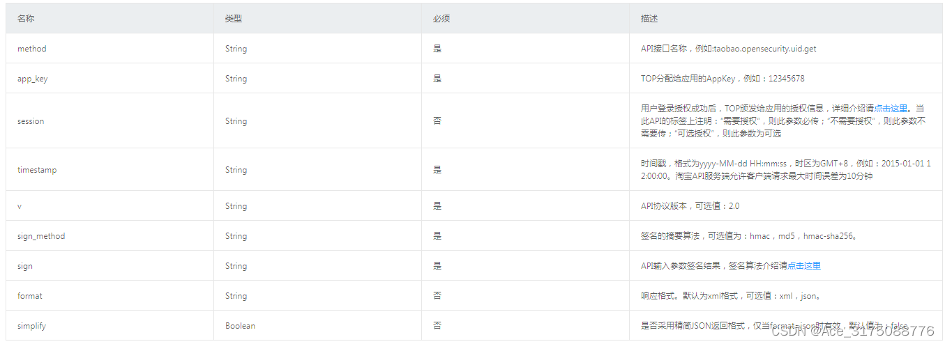 公共请求参数: