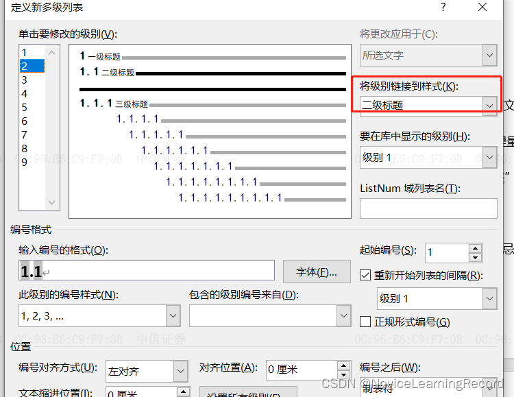 就是先把各级标题分别套上标题一标题二标题三,然后和各级标题关联上,就可以自动改了,注意这里要把重新开始间隔加上,不然就会延续上一级标题
