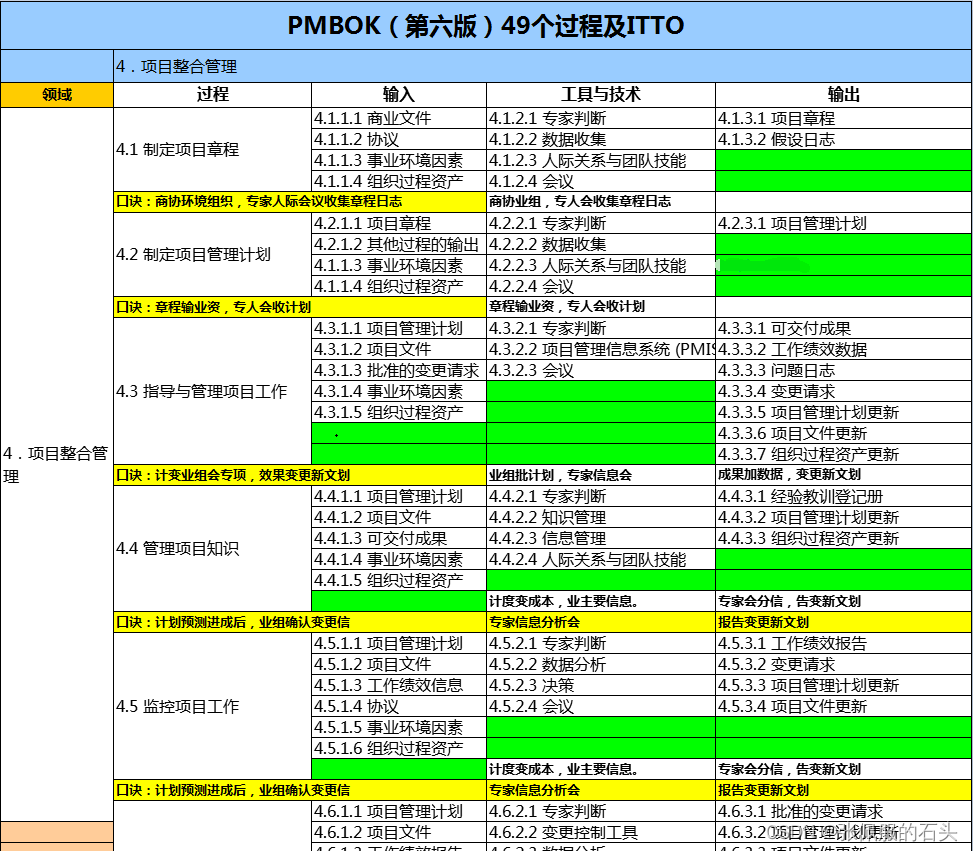 - 做题经验:定位知识域,过程组,阶段。做题时注重定位问题,灵活运用知识点。