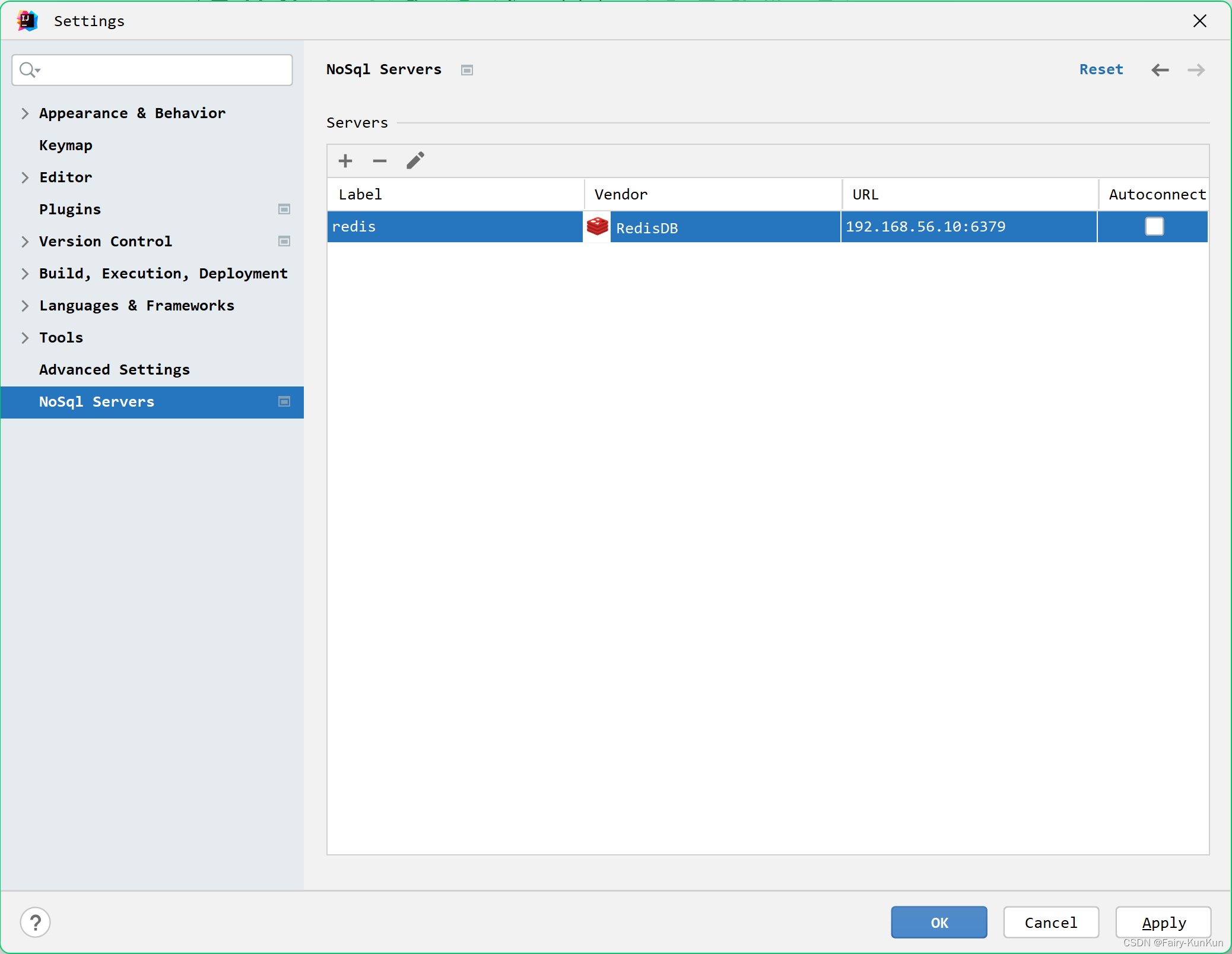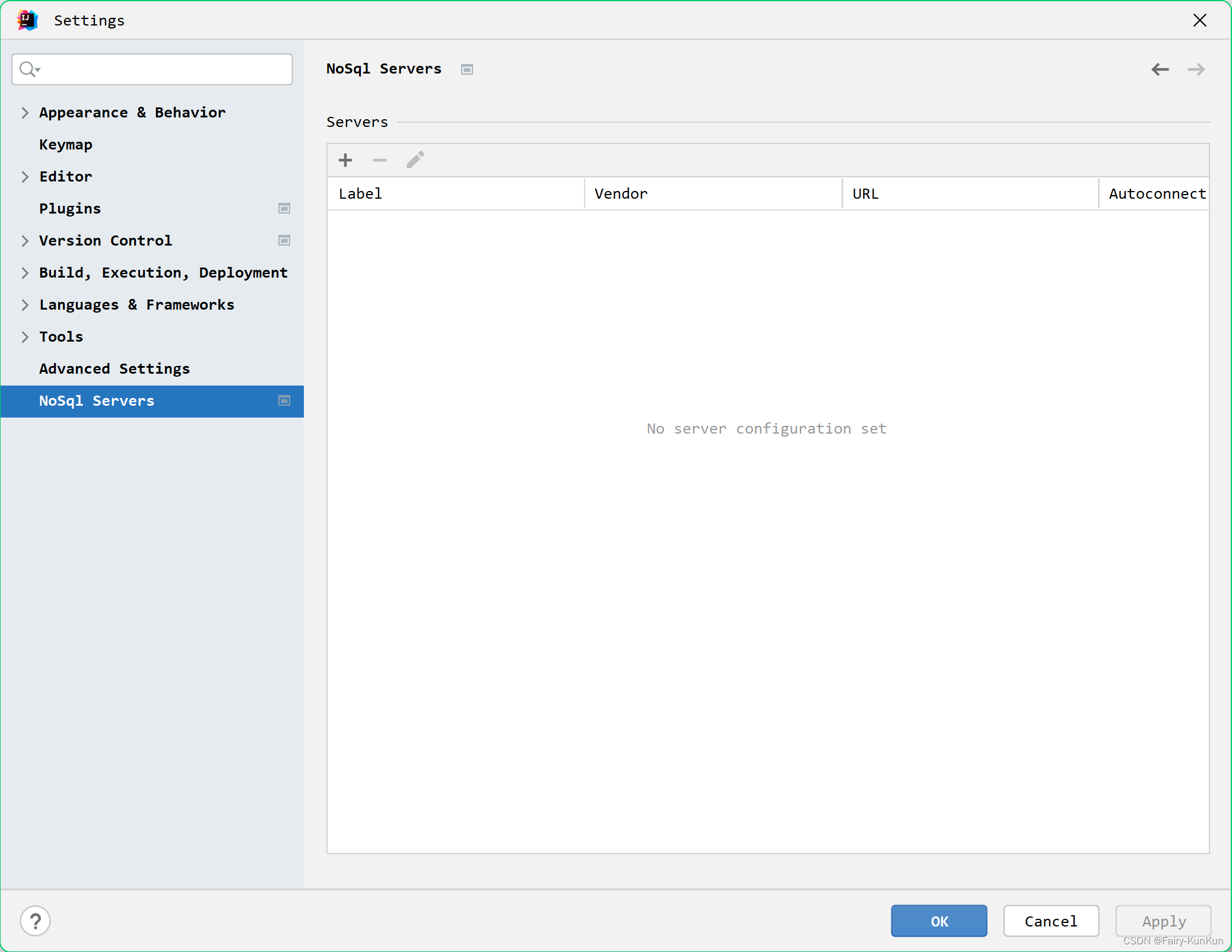 2. 选中 NoSql Servers ,点击 Servers 下面的加号