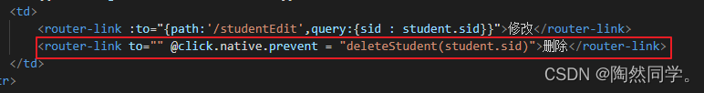 <router-link to="" @click.native.prevent = "deleteStudent(student.sid)">删除</router-link>