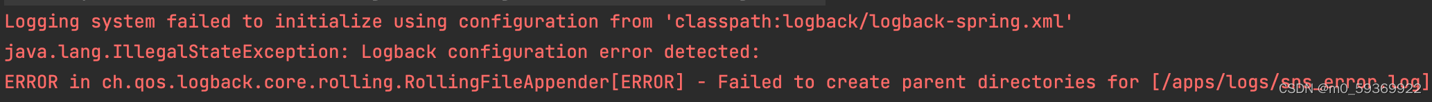 据报错信息显示,初始化“logback-spring.xml”失败,监测到“Logback”配置出错,非法的声明异常,