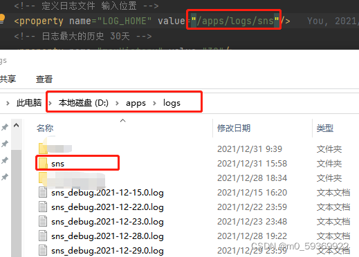 背景说明:在Windows系统上我的项目放在D:盘的一个文件夹中,然后今天在D:盘找到了“/apps/logs”目录,正如下图配置中的路径一样。