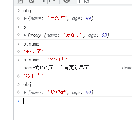 首先可以看到,通过p修改值的时候,数据依旧是响应式的。