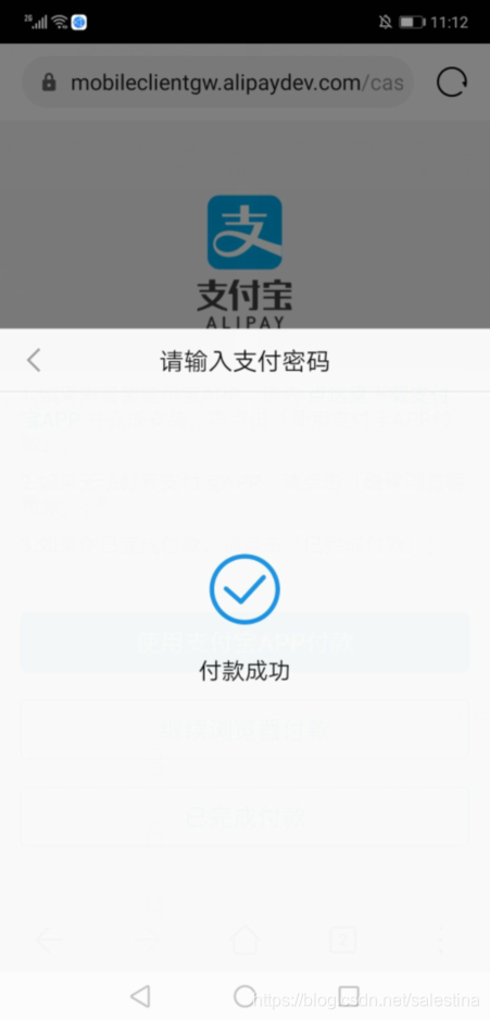 5、输入正确密码后,支付宝端显示支付结果,如下图 5;