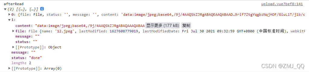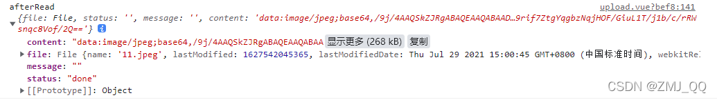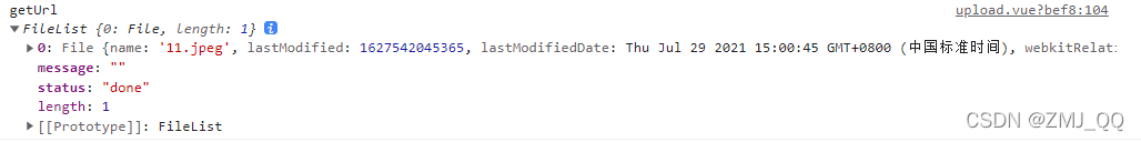 选择一张图片上传,file值如下图所示,返回值是一个对象