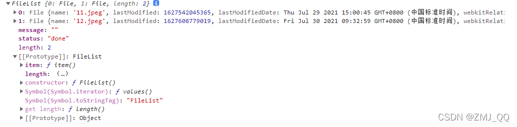 选择两个图片上传,file值是一个数组