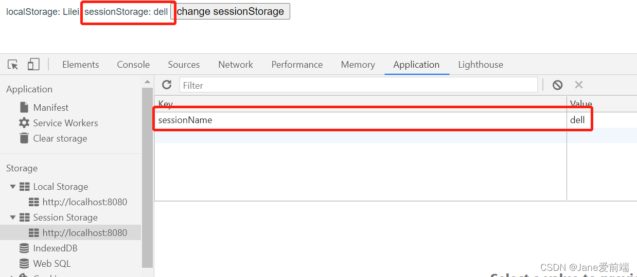 点击按钮change方法触发,将sessionName改为dell,