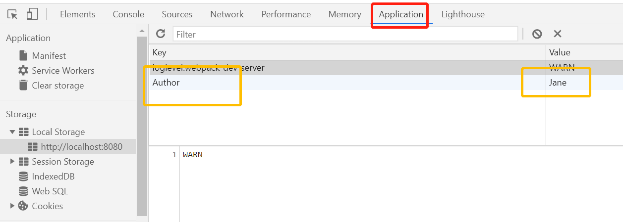 localStorage.setItem('Author', 'Jane')