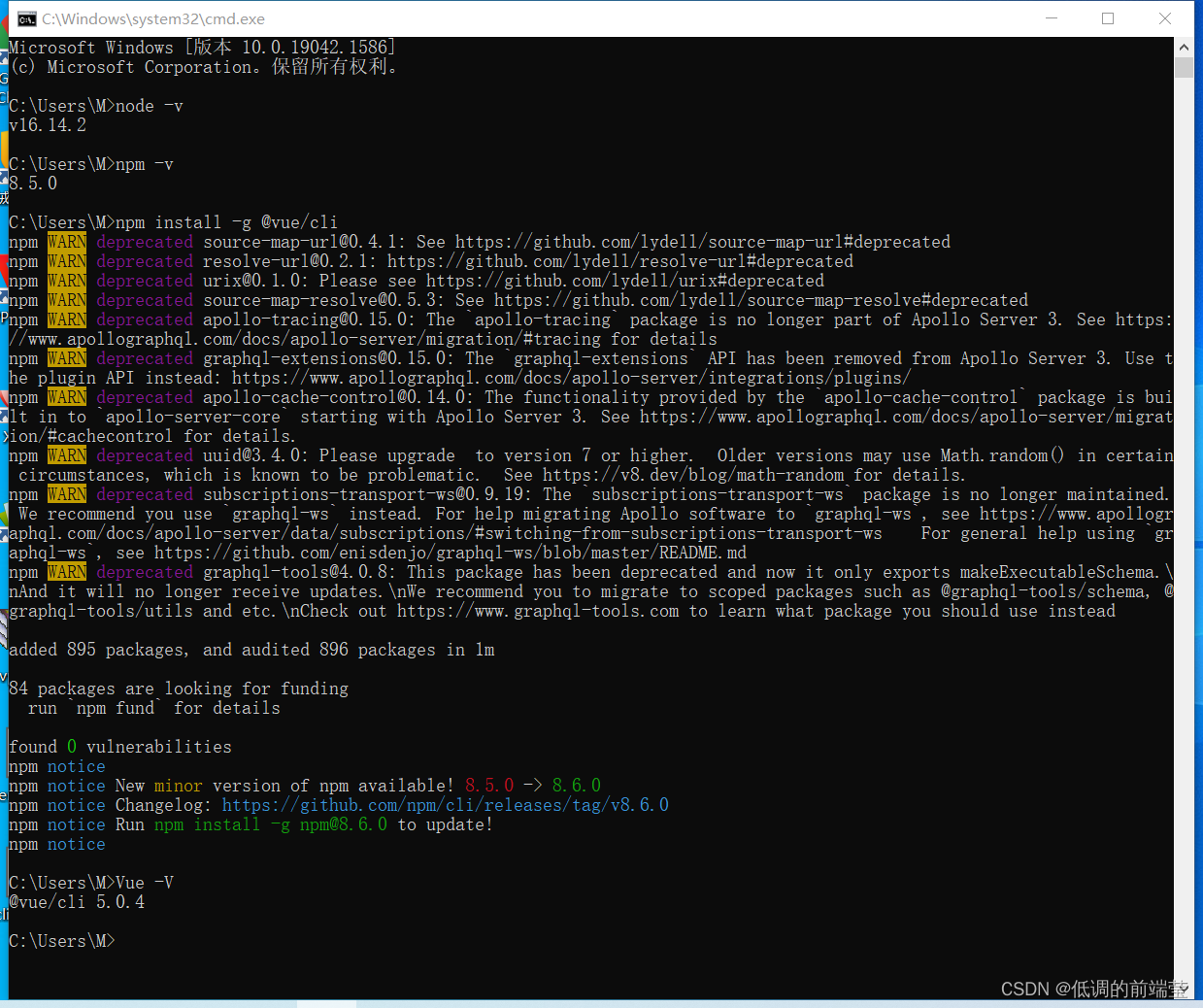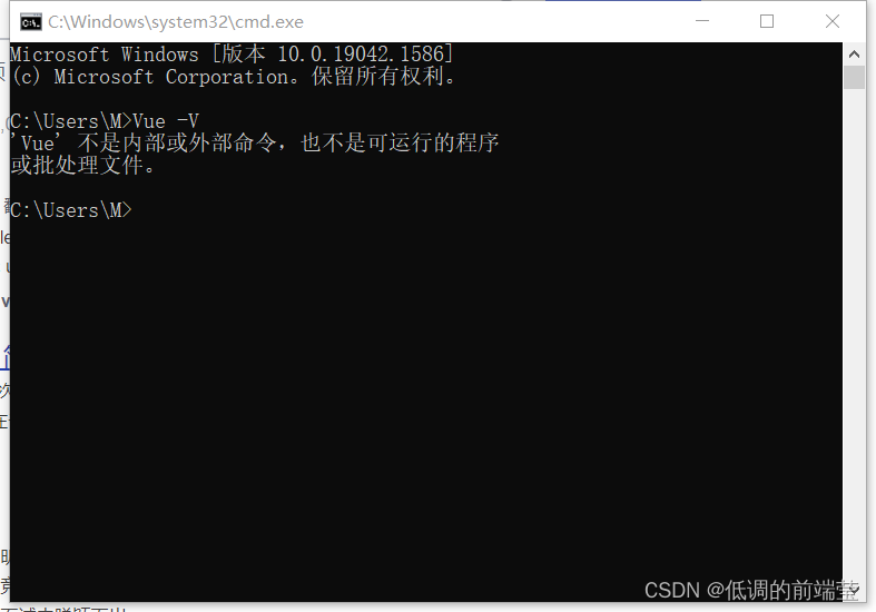 如果提示:'Vue' 不是内部或外部命令,也不是可运行的程序或批处理文件。先排查自己的电脑有没有安装npm环境。