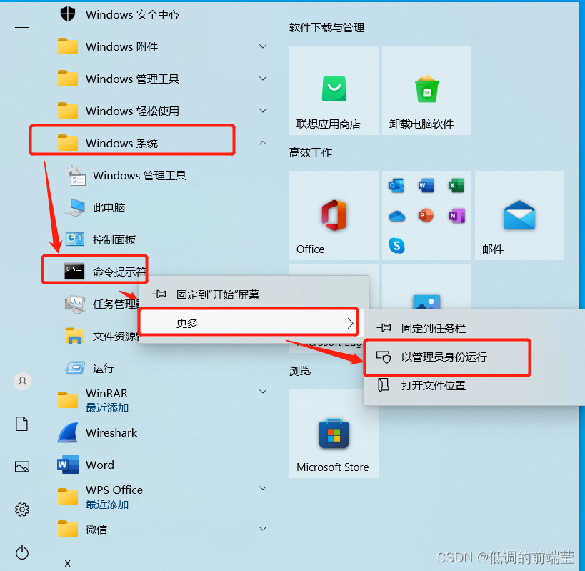 建议以管理员角色打开cmd界面,开始->Windows系统->命令提示符->更多->以管理员身份运行。如果当前用户是管理员用户,直接使用组合快捷键Windows+R打开cmd界面