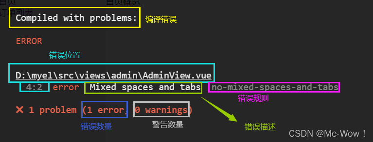 错误规则 no-mixed-spaces-and-tabs指space空格和tab空格不能混合使用;