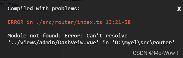 模块找不到:不能resolve(兑现,发现,解决)../views/admin/DashVeiw.vue