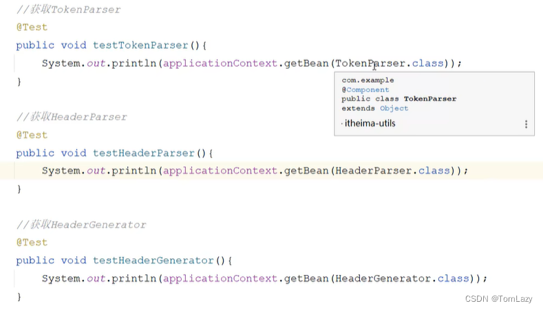 | 单元测试:获取itheima-utils中的bean以及配置类: |