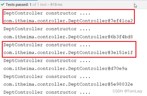 | 给DeptController类加上@Lazy注解,让其进行懒加载,即:不让Spring在程序启动时就实例化bean对象,而是在我们第一次请求它们时再创建: