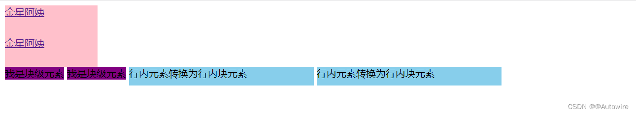 - 链接属于行内元素, 但是此时需要宽度高度,因此需要模式转换.