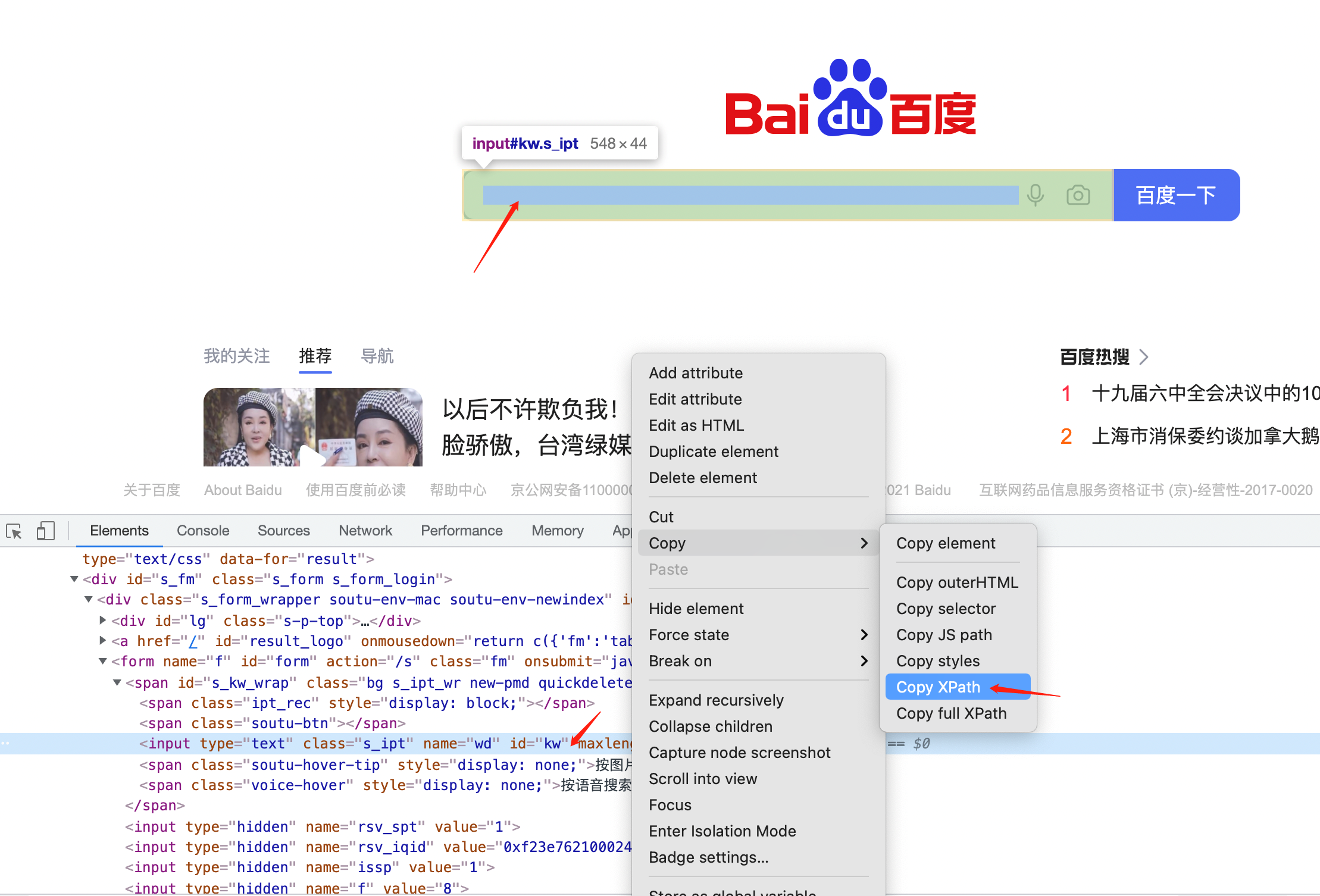 通过XPATH定位百度搜索输入框的元素 以百度的方式呈现