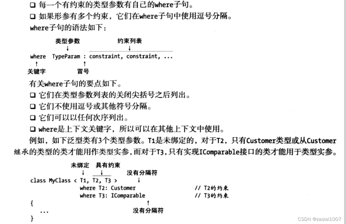 要让泛型变得更有用,我们需要提供额外的信息让编译器直到参数可以接受那些类型。这些额外的信息叫做约束。只有符合约束的类型才能替代给定的类型参数,来产生构造函数