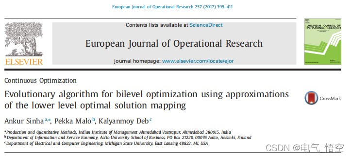 双层优化是优化的一个分支,它包含一个嵌套在外部优化问题约束下的优化问题。外部优化任务通常被称为上层优化问题,内部优化任务被称为下层优化问题。下层问题作为约束出现,使得只有下层优化问题的最优解才是上层优化问题的可能可行候选。这样的要求使得两级优化问题难以处理,并使研究人员和实践者同样忙碌。分层优化结构可能会带来一些困难,如非凸性和不可连接性,甚至对于更简单的两层优化,如两层线性规划问题。已知双层线性规划是强NP难的(汉森,贾马尔,萨瓦德,1992),已经证明,仅仅评估最优解也是一个NP难的任务。这给了我们一个关于复杂(非线性、非凸、不连续等)的双层问题所带来的挑战的概念。)目标和约束函数。