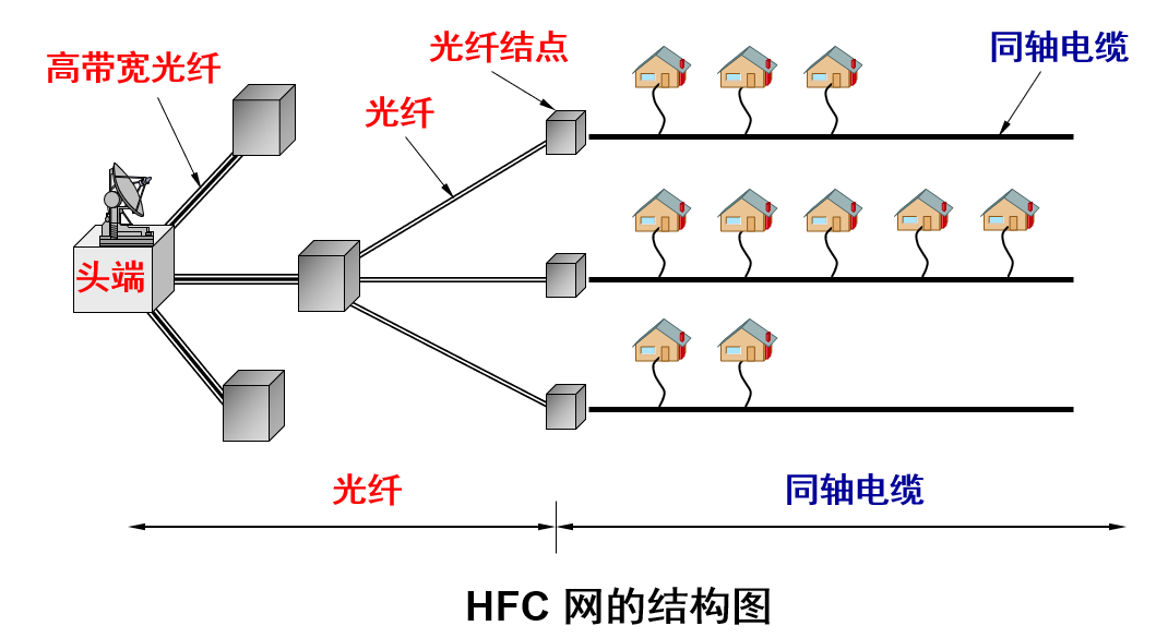 从接入用户的角度看,HFC是经过双向改造的有线电视网,但从整体上看,它是以同轴电缆网络为最终接入部分的宽带网络系统。