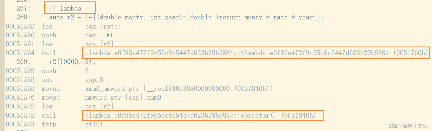 观察lambda表达式时,也能看到类似的汇编代码