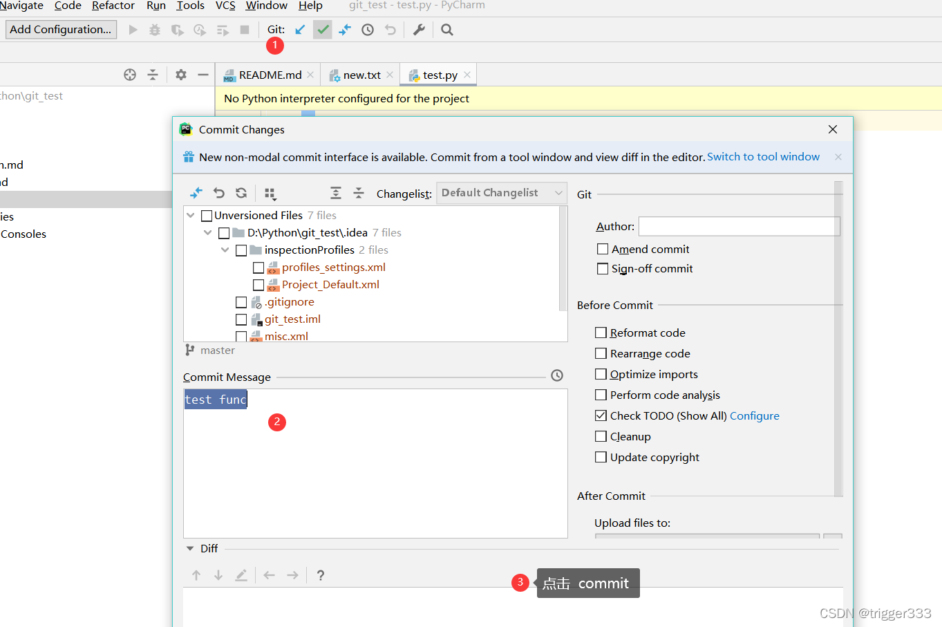 git commit -m '初始化项目版本' 提交到本地仓库 ''单引号中的是本次提交的注释