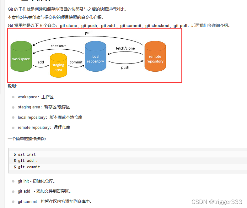 git add . 把所有的项目添加到暂存区 也就是说确定哪些文件要被git管理 . 代表所有文件