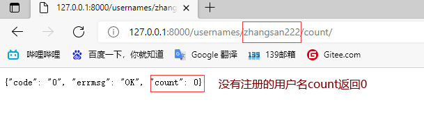 count = User.objects.filter(username=username).count() # filter返回结果集,.count取出条数