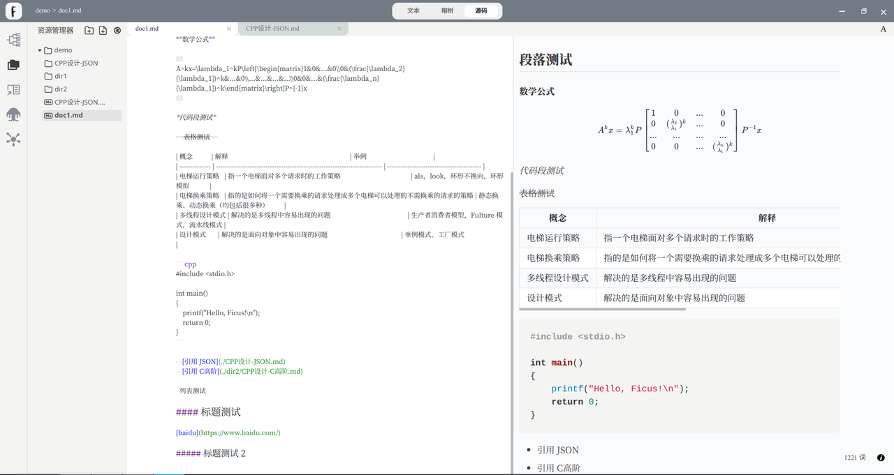Ficus 是一款 markdown 文档的编辑管理软件,由 gg=G 团队开发。