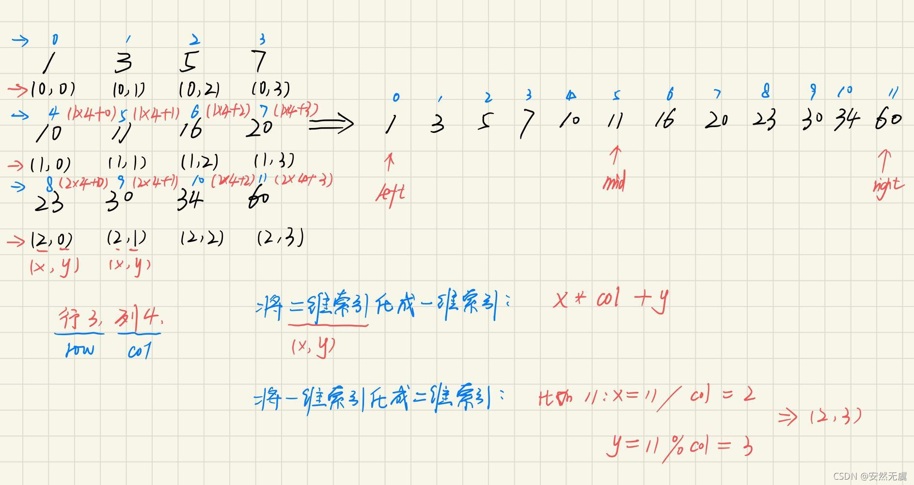 element = matrix[mid / col][mid % col];//将一维的索引化成二维的索引