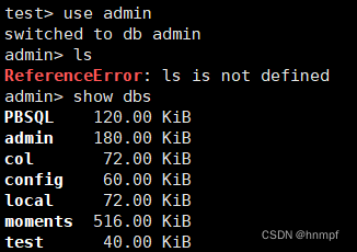 10、通过mongosh 进行命令操作页面通过use moments(自己的数据库实例) 切换到自己的数据库实例