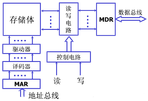 其中存储体由若跟个存储单元组成,存储单元由多个存储元件组成