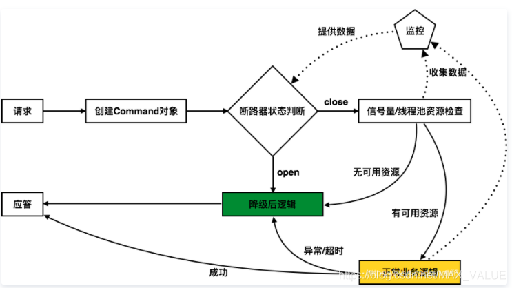第一,断路器是open状态,此时所有的请求会进入到降级方法中。我们项目的实际情况是活动启动的瞬间并发高导致降级,这种降级只是部分请求的降级,故排除这种情况。