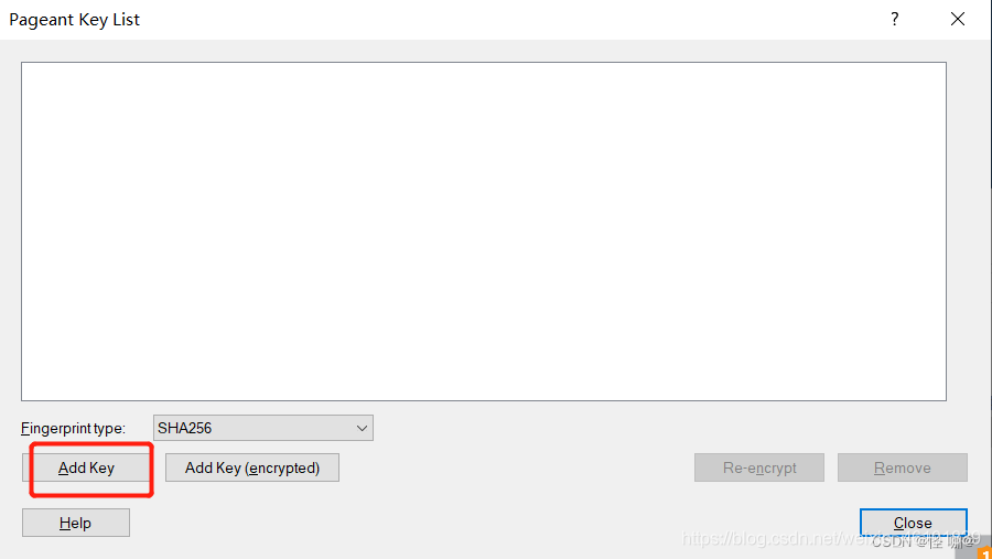 5.在弹出的key管理列表中,点击add key,将第3步中保存的私钥(.ppk)文件加进来,关闭对话框即可。