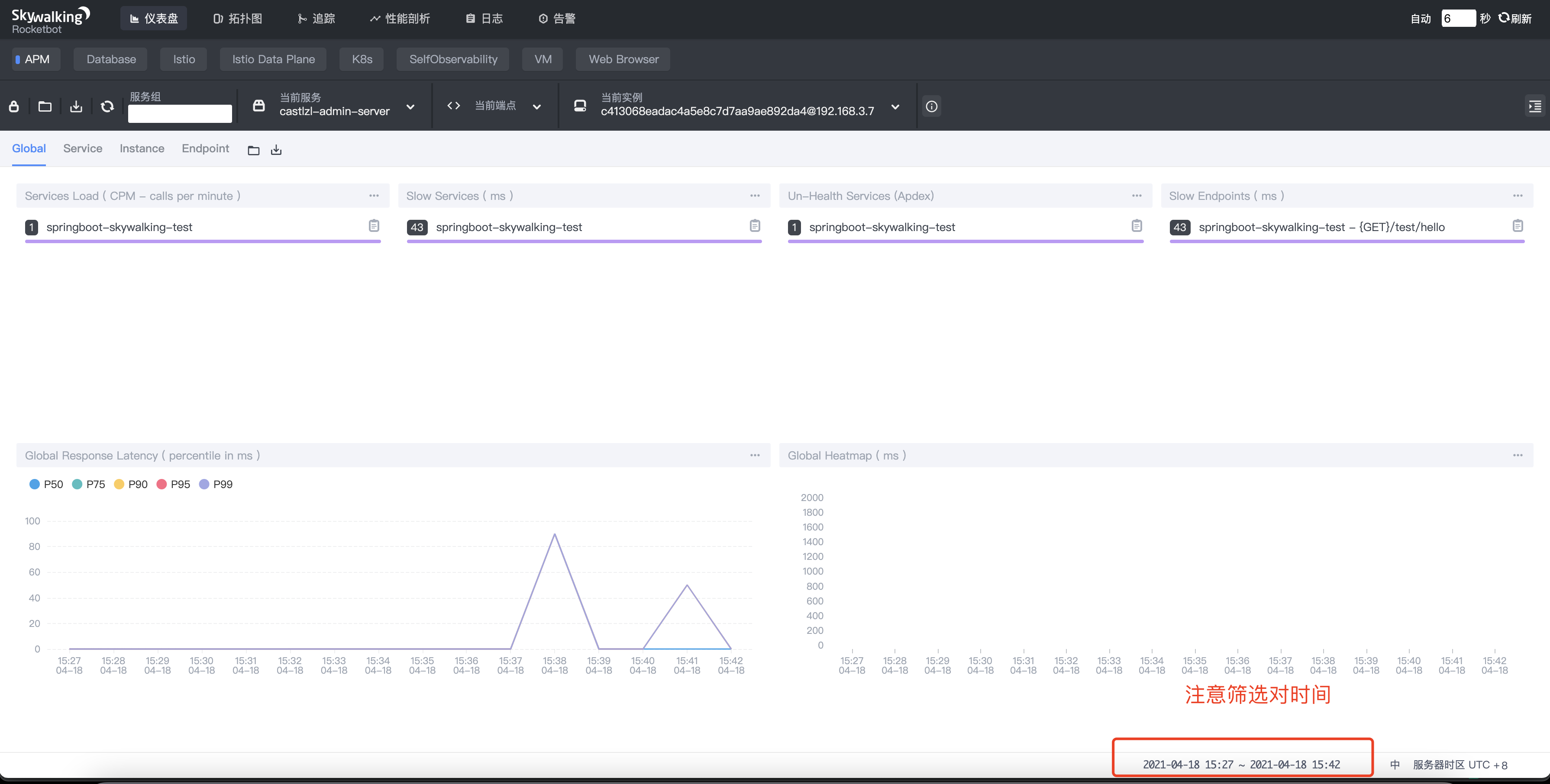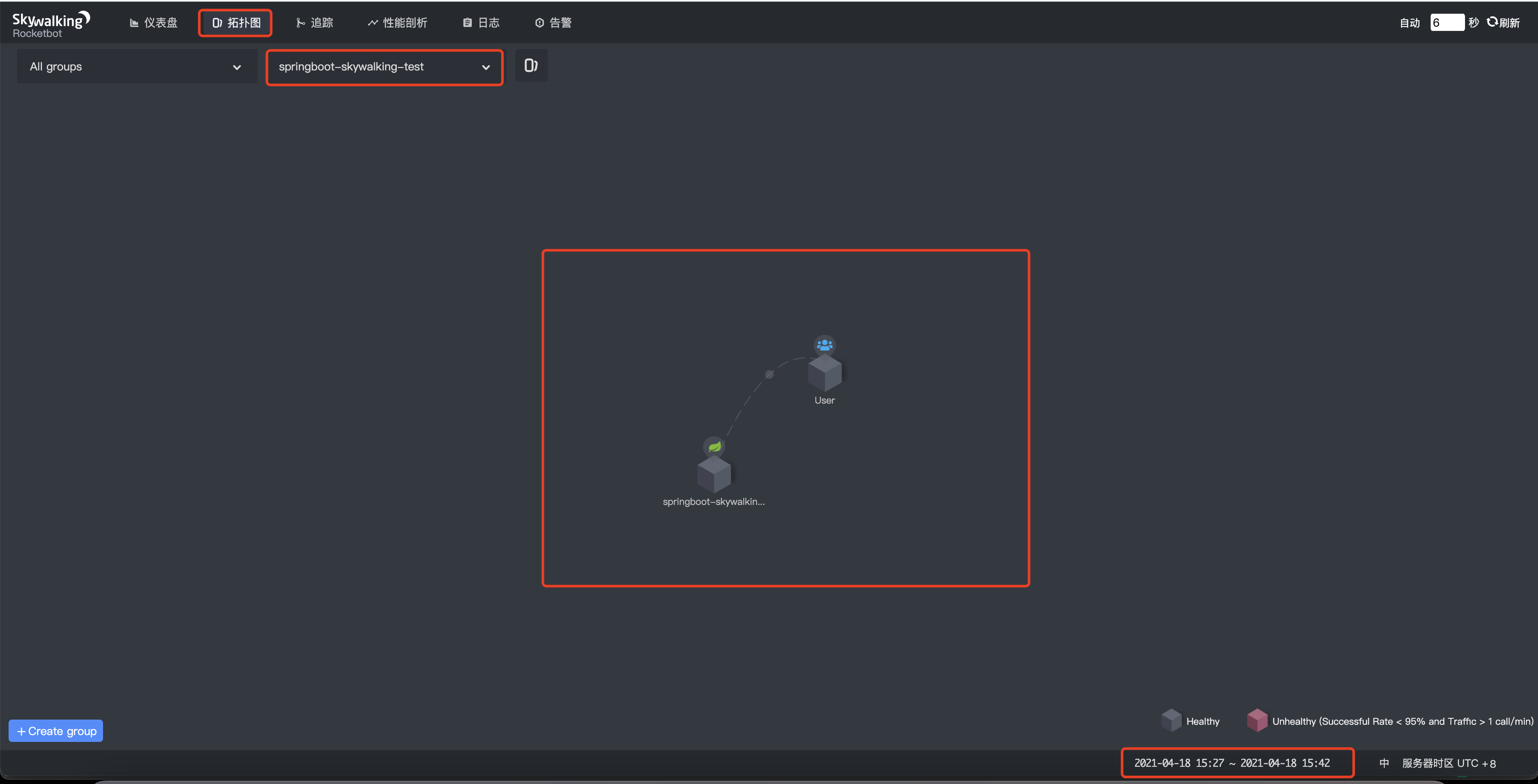 skywalking UI 主界面地址:http://localhost:8888/ #localhost 可替换为你的宿主机ip