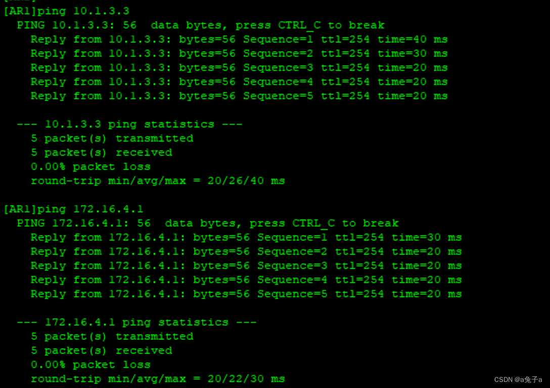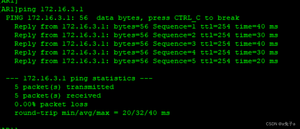 上路由表截图可以发现无异常,可以正常使用:再从R1-R3的ping测试
