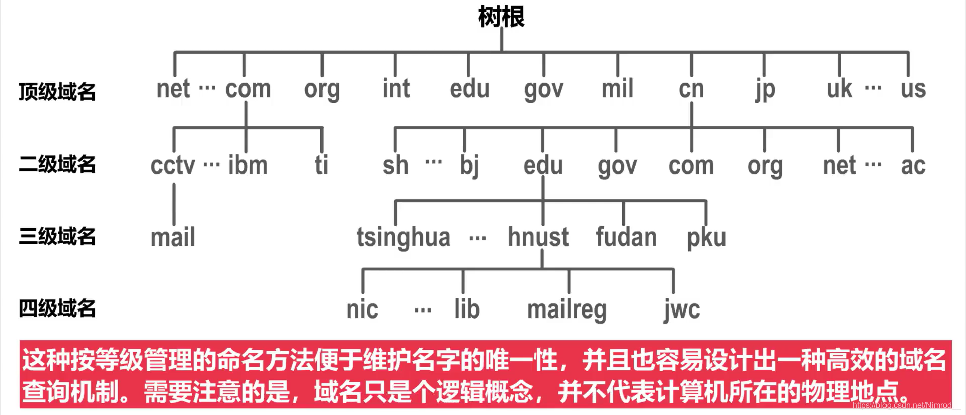 DNS树的每个节点代表一个域,通过这些节点,对整个域名空间进行划分,成为一个层次结构。域名空间的每个域的名字,通过域名进行表示。