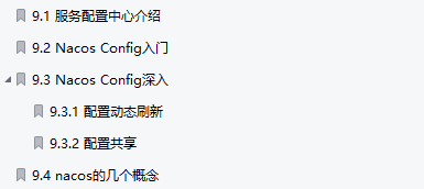 一共有10个章节,前面的微服务介绍,环境搭建在这里就不截图出来拉长篇幅了我们直接看SpringCloudAlibaba的几大生态组件