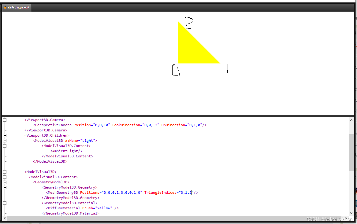 如果增加TriangleIndices="0,1,2",加和不加都是一样;如果调整TriangleIndices点的顺序,三角形将不可见;