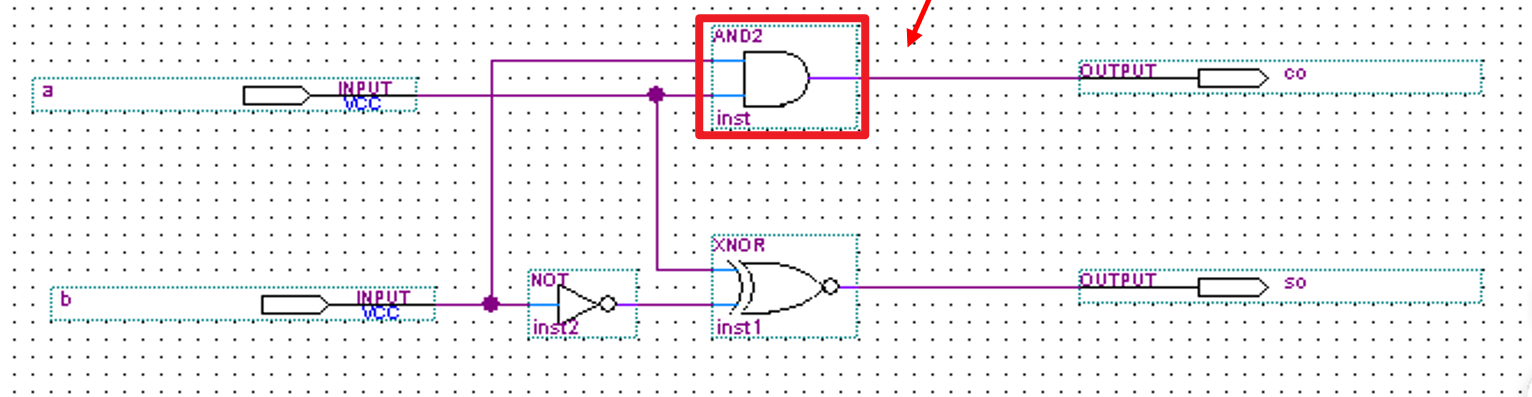 - 在图5中,部件inst的输入端pin_235与输入端cin使用了粗线连接(或BUS总线连接),导致错误。