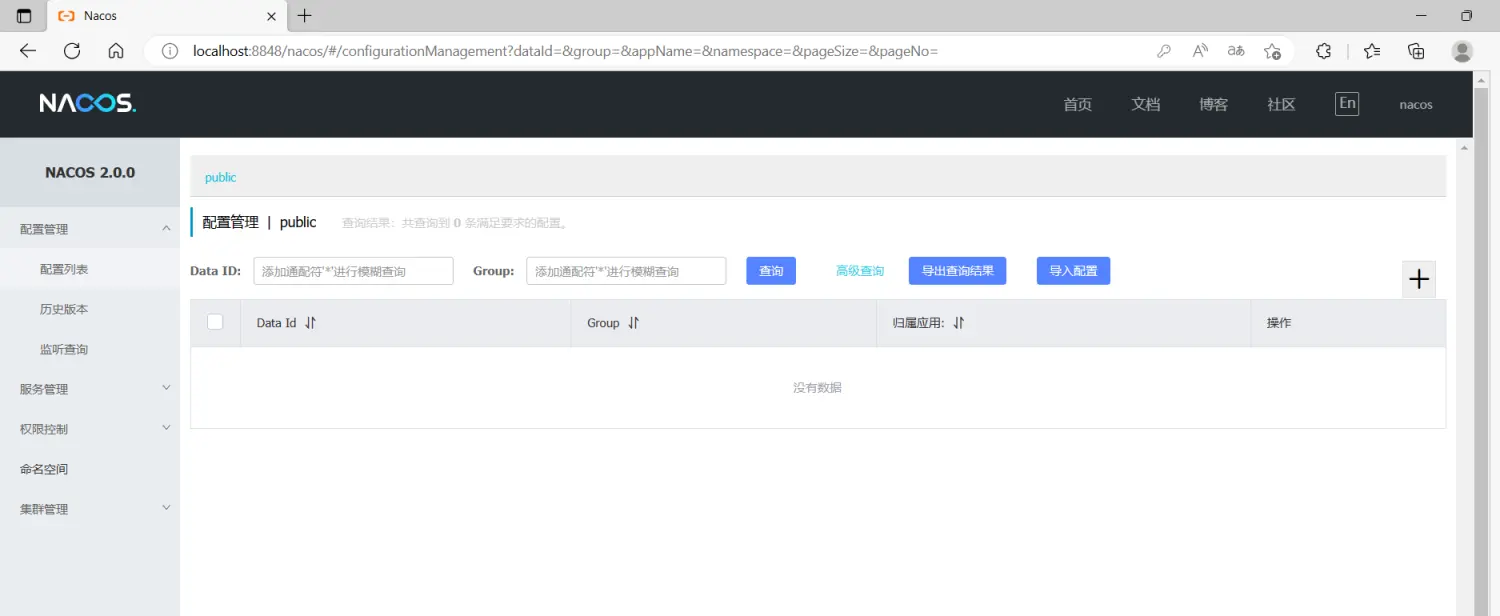 运行成功后访问:http://localhost:8848/nacos 。默认账号:nacos,密码:nacos