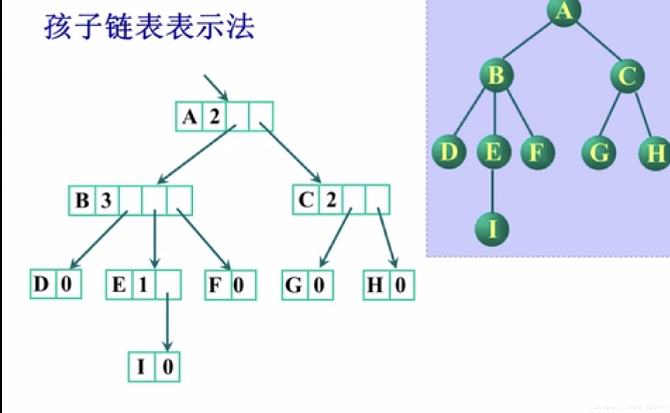 我们把每个结点的孩子结点排列起来,以单链表的形式给存储起来,则n个结点有n个孩子链表,如果是叶子结点则表示单链表为空。然后n个头指针又组成一个线性表,采用顺序存储的方式存储到一个数组中去。