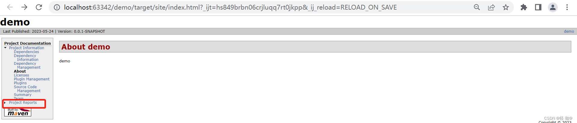 maven-site-plugin属于一个maven内置绑定插件,默认就绑定到了site生命周期,所以我们项目当中并不需要引入相关依赖。打开命令行窗口,跳转到 当前项目的目录中,执行如下 mvn 命令:mvn site 就可以生成了。