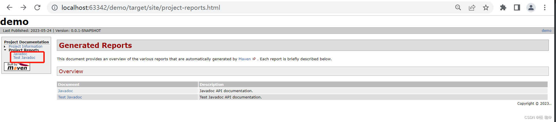 在这里我们使用reporting的方式,将javadoc集成到站点。