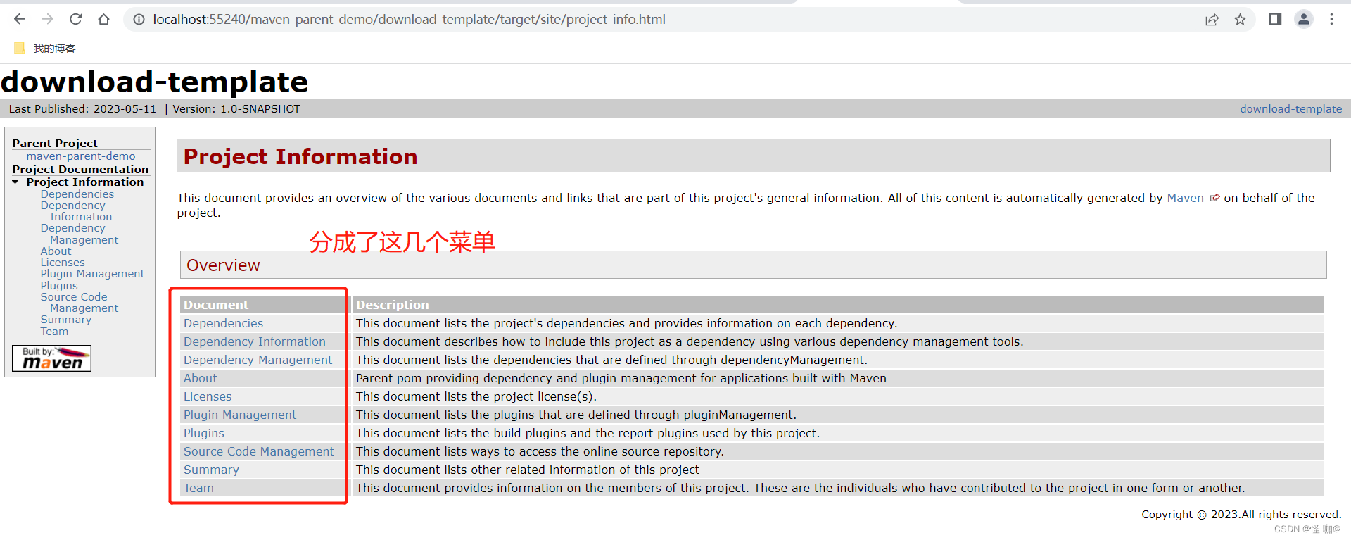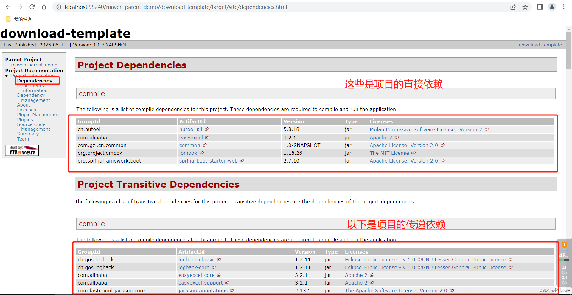 作用:将整个项目的依赖数据生成一个网站,不仅会展示当前项目的依赖,而且还会展示传递依赖、以及依赖版本的管理等等…