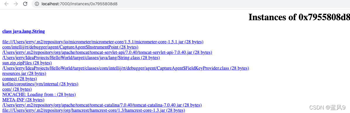 查看 java.lang.String 的 instances