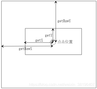 上述的三种情况是典型的事件序列,同时通过MotionEvent对象可以得到点击事件发生的x和y坐标。系统提供了两组方法:getX/getY和getRawX/getRawY。getX/getY返回的是相对于当前View左上角的x和y坐标,而getRawX/getRawY返回的是相对于手机屏幕左上角的x和y坐标。