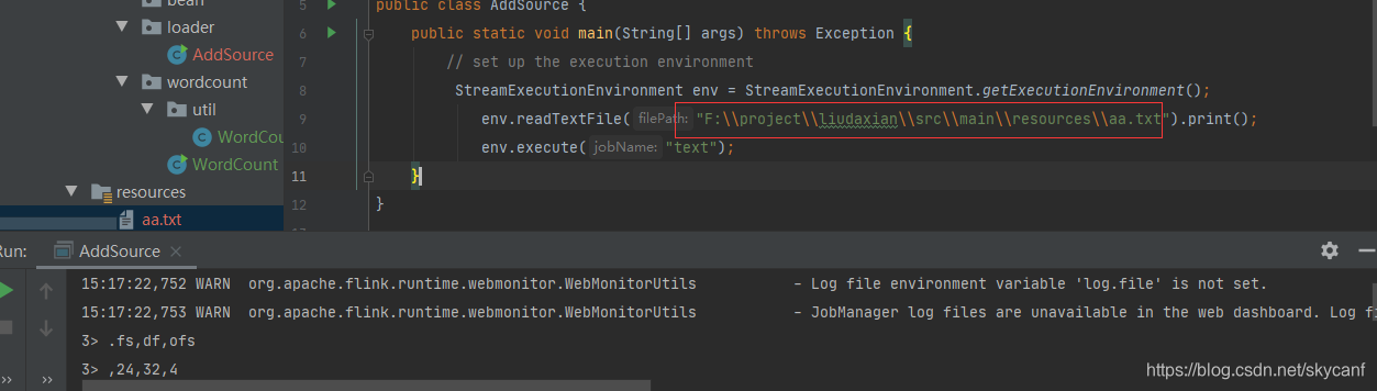 readTextFile(path)-TextInputFormat逐行读取文本文件,即符合规范的文件,并将其作为字符串返回。 -
